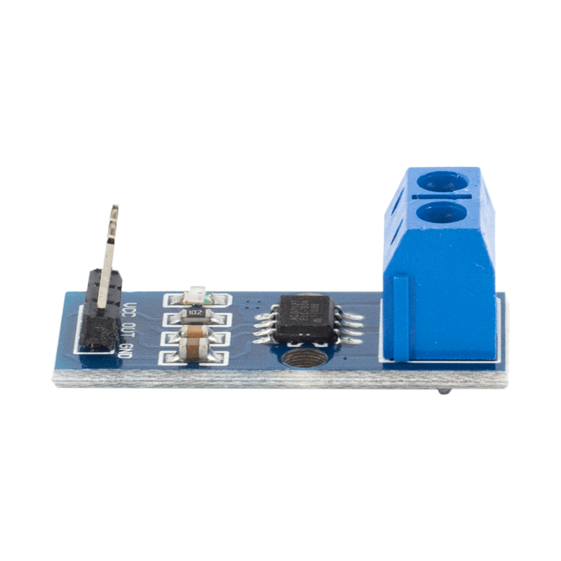 O sensor de corrente ACS712 pode ser utilizando com corrente alternada (AC) e corrente contínua (DC). Os bornes de ligação são completamente isolados da saída para o microcontrolador.